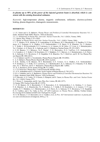 8. Сахаров А. С. // Физика плазмы. 2019. Т. 45. Вып. 4. С. 291.