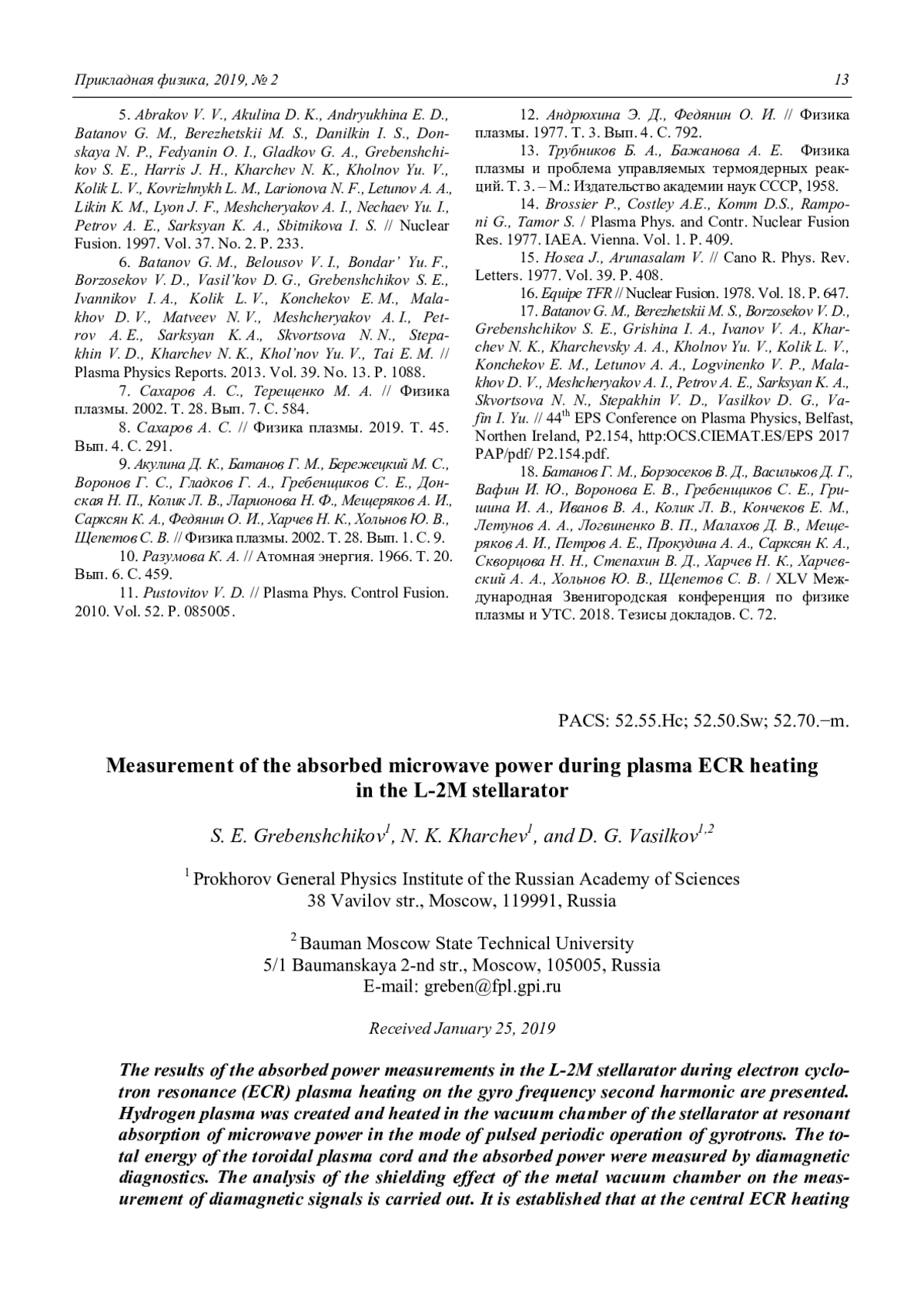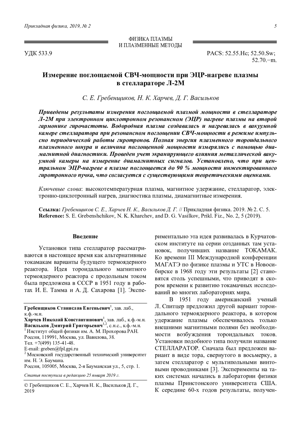 9. Акулина Д. К., Батанов Г. М., Бережецкий М. С., Воронов Г. С., Гладков Г. А., Гребенщиков С. Е., Донская Н. П., Колик Л. В., Ларионова Н. Ф., Мещеряков А. И., Сарксян К. А., Федянин О. И., Харчев Н. К., Хольнов Ю. В., Щепетов С. В. // Физика плазмы. 2002. Т. 28. Вып. 1. С. 9.