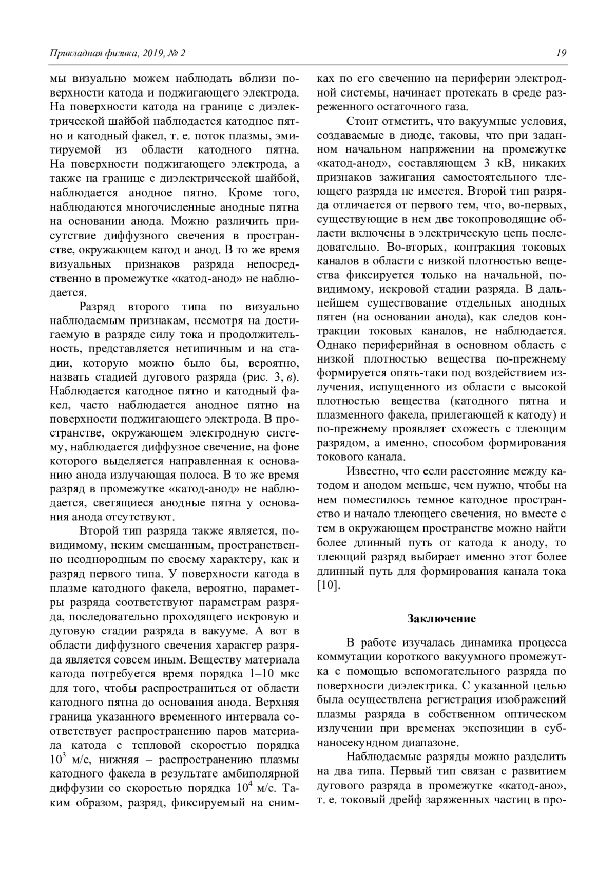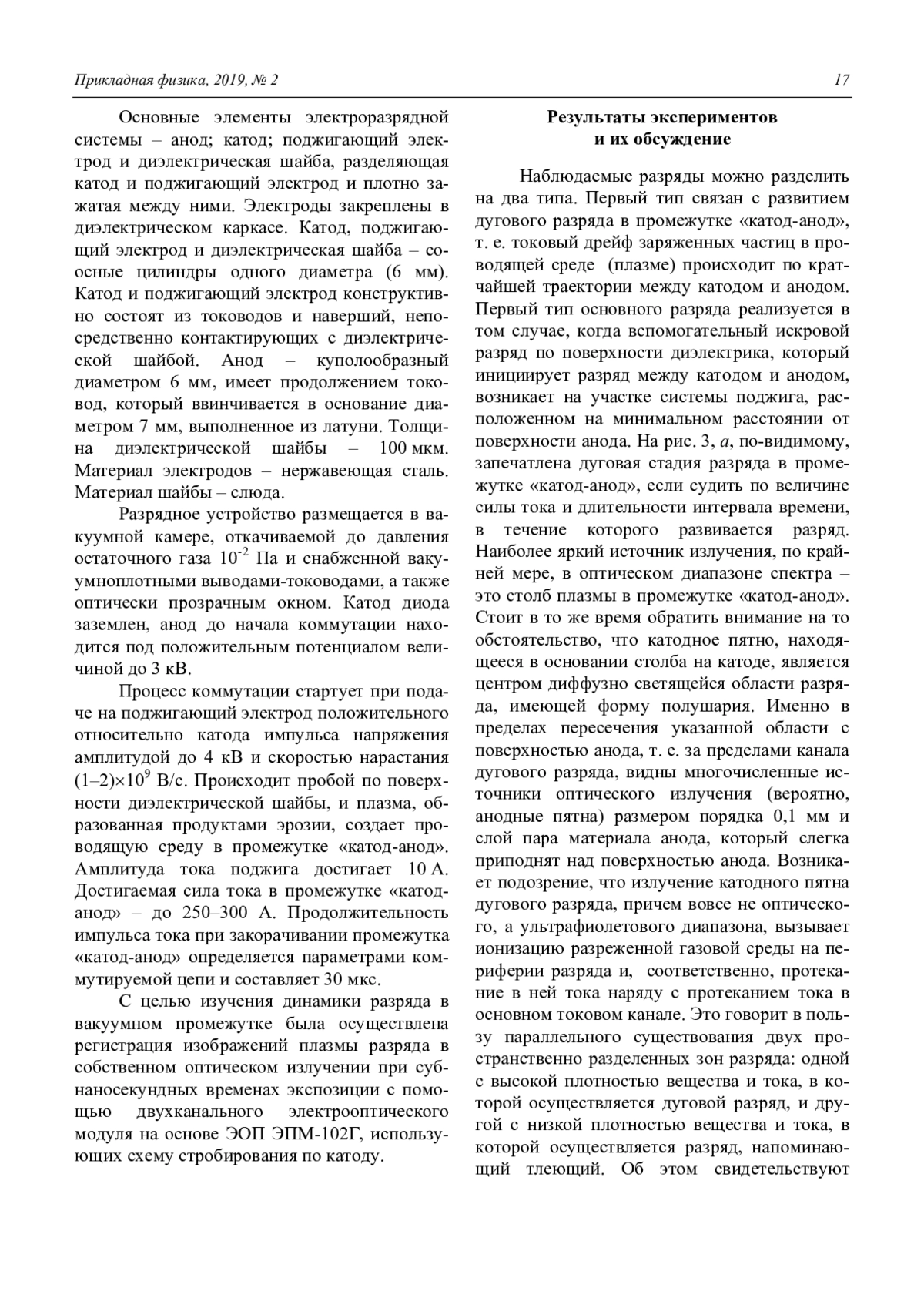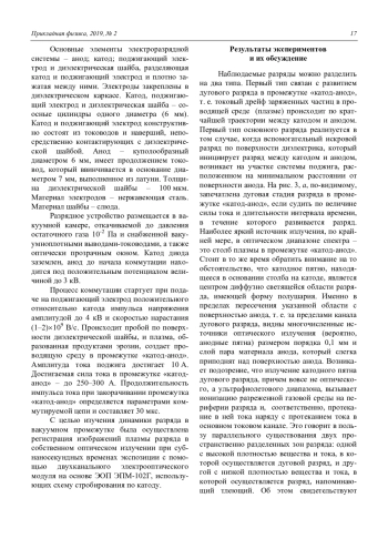 Статья: Высокоскоростная регистрация изображений вакуумно-дугового разряда в оптическом диапазоне спектра (2019)