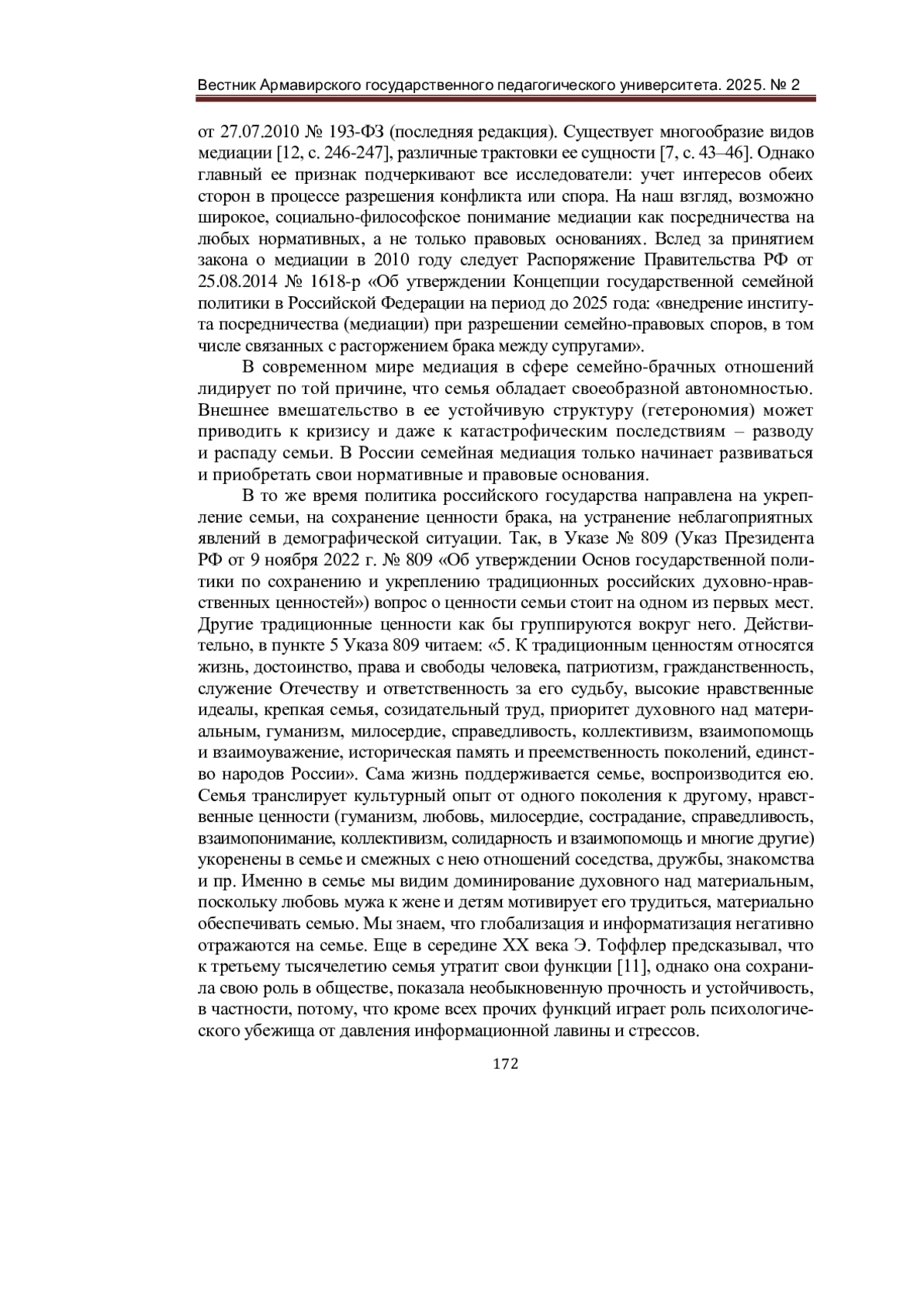 8. Орлова, Л. В. Защита семейных ценностей: семейная медиация в современной России / Л. В. Орлова, Ю. В. Первова, И. Е. Шафранский. - Текст: непосредственный // Технологизация социо-экономической сферы. - 2024. - Том 2. - № 1 (2). - С. 19. EDN: BFGUDP