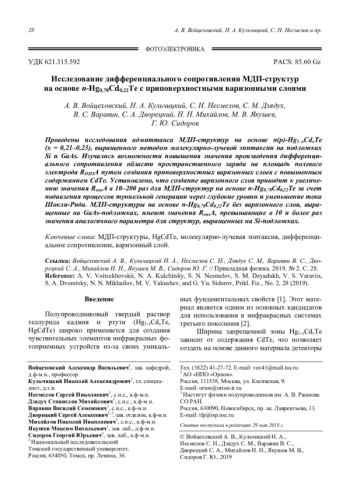 Ключевые фразы: мдп-структуры, HgCdTe, молекулярно-лучевая эпитаксия, дифференци- альное сопротивление, варизонный слой