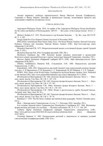 14. [Proskuryakova] Проскурякова Г.М. 1966а. Конспект флоры Большого Балхана. Часть 3. - Науч. докл. высш. школы. Сер. биол. № 2. М. С. 134-143.