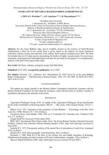 16. [Proskuryakova] Проскурякова Г.М. 1967. Конспект флоры Большого Балхана. Часть 4. - Науч. докл. высш. школы. Сер. биол. № 3. М. С. 70-79.