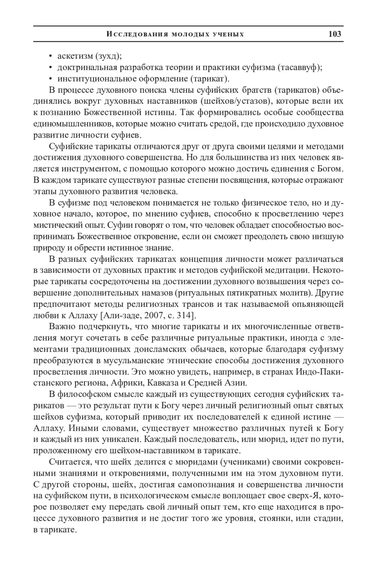 Ключевые фразы: СУФИЗМ, тарикат кадирия, формирование личности, духовные практики, психология религии, философская антропология
