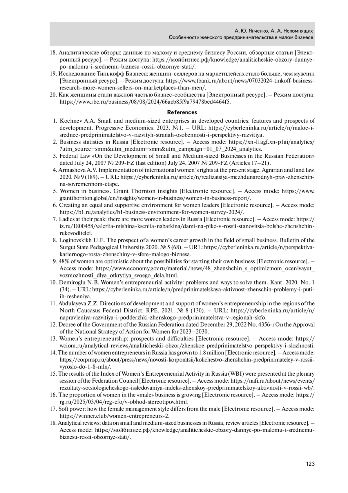 1. Кочнев А.А. Малое и среднее предпринимательство в развитых странах: особенности и перспективы развития. Прогрессивная экономика. 2023. № 1. - URL: https://cyberleninka.ru/article/n/maloe-i-srednee-predprinimatelstvo-v-razvityh-stranah-osobennosti-i-perspektivy-razvitiya.