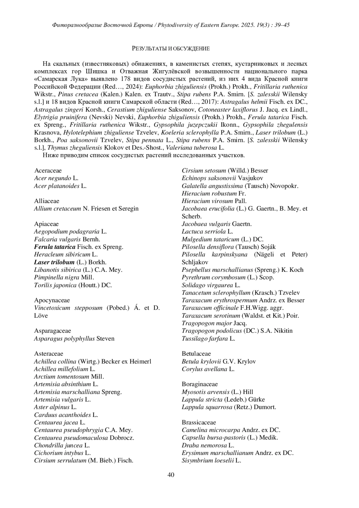 Статья: МАТЕРИАЛЫ К ФЛОРЕ И РАСТИТЕЛЬНОСТИ НАЦИОНАЛЬНОГО ПАРКА «САМАРСКАЯ ЛУКА» (2025)
