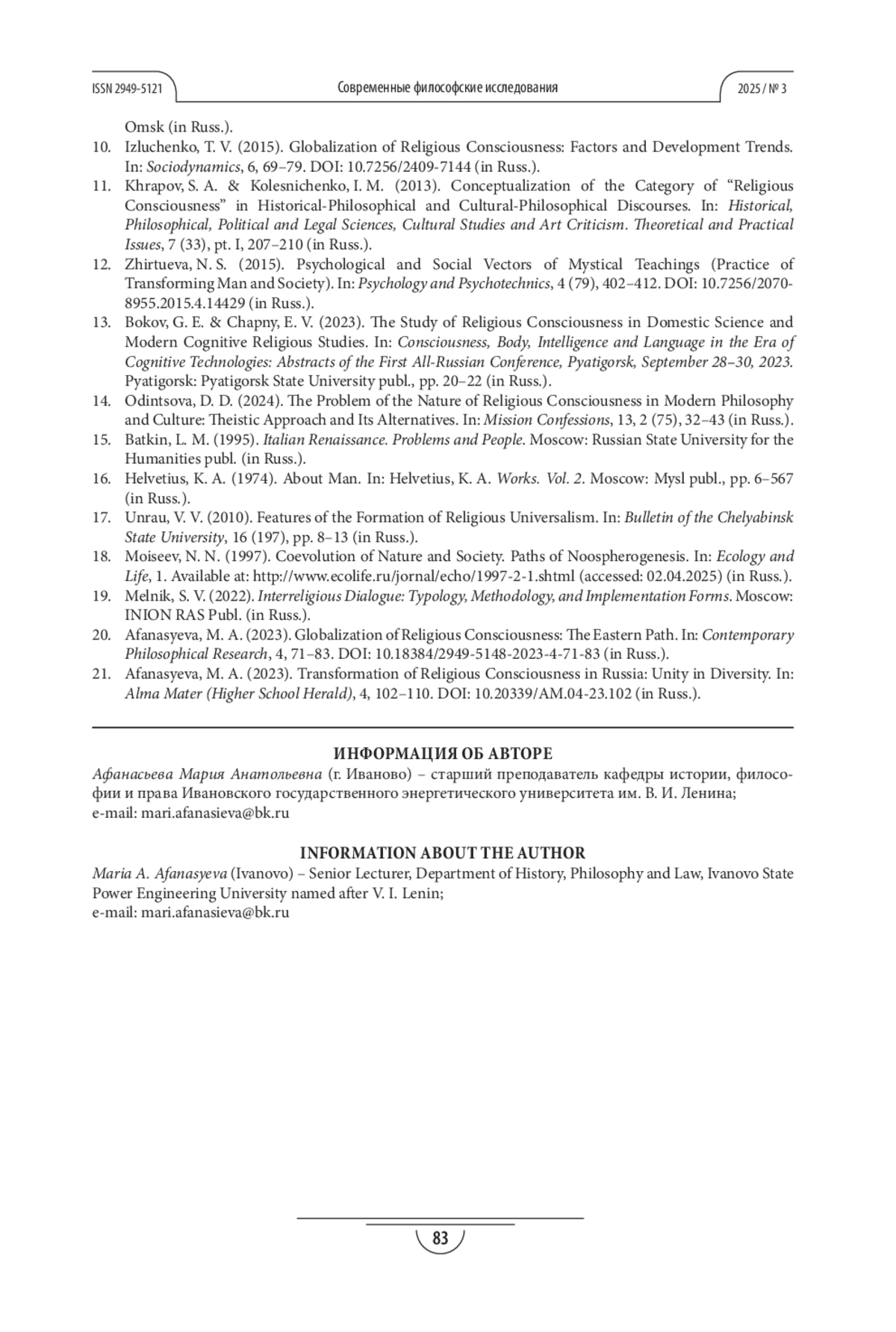 Теоретическая и/или практическая значимость. Предложенное понятие делает шаг к более полному пониманию феномена глобализации религиозного сознания. Практическая значимость состоит в возможности исследовать состояние религиозного сознания в масштабах государства, отдельных социальных групп.