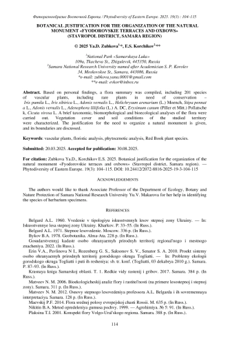 23. [Trantina] Трантина Е.В., Лысенко Т.М. 2017. Результаты исследования флоры степных сообществ Ставропольского района Самарской области. - Самарская Лука: проблемы региональной и глобальной экологии. 26(4): 219-222. EDN: YMAMFN