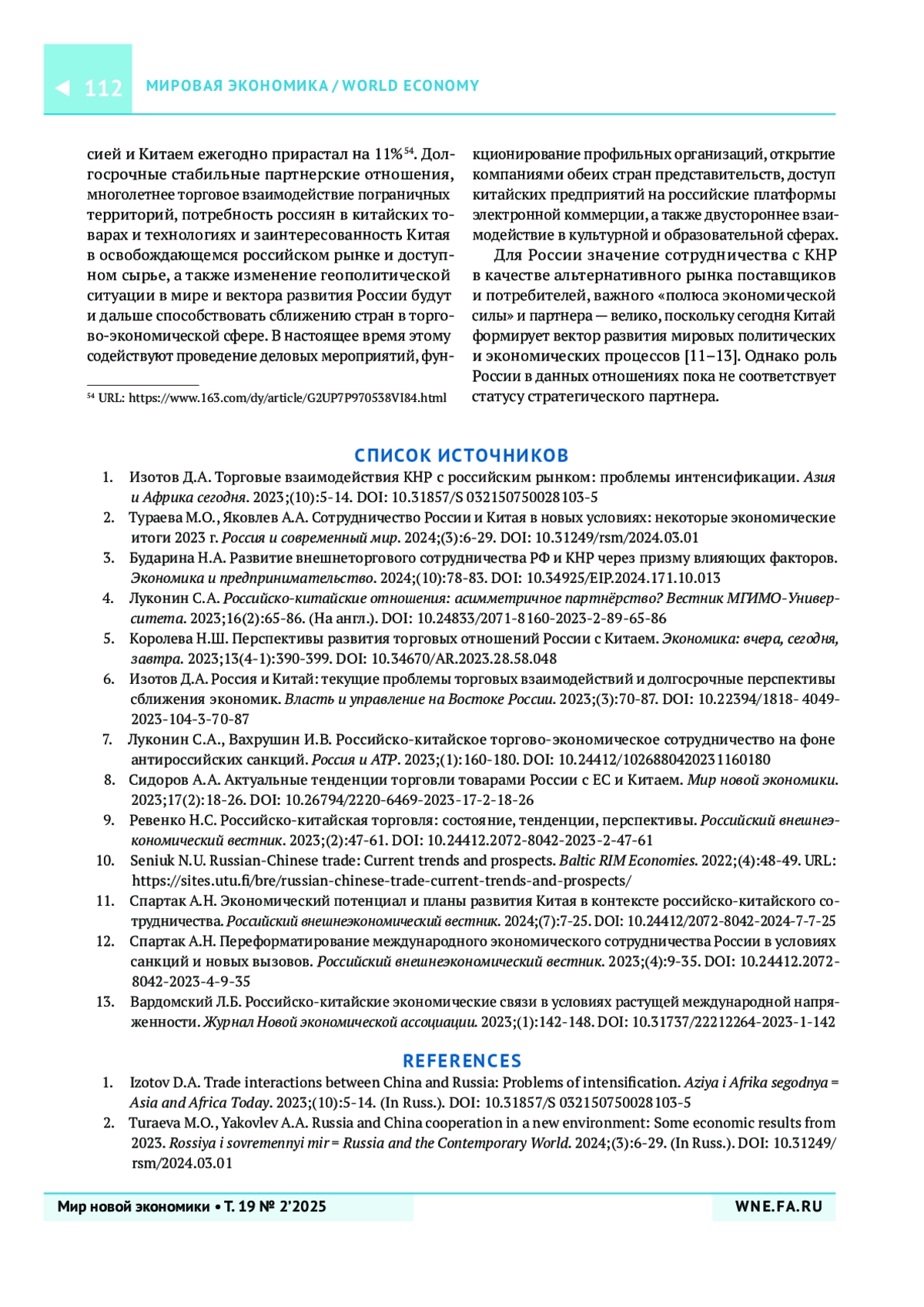 1. Изотов Д.А. Торговые взаимодействия КНР с российским рынком: проблемы интенсификации. Азия и Африка сегодня. 2023;(10):5-14. https://doi.org/10.31857/S 032150750028103-5