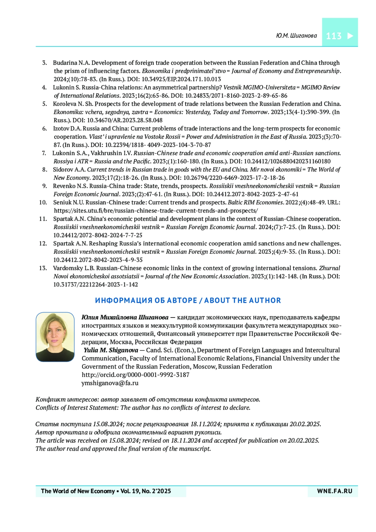13. Вардомский Л.Б. Российско-китайские экономические связи в условиях растущей международной напряженности. Журнал Новой экономической ассоциации. 2023;(1):142-148. https://doi.org/10.31737/22212264-2023-1-142