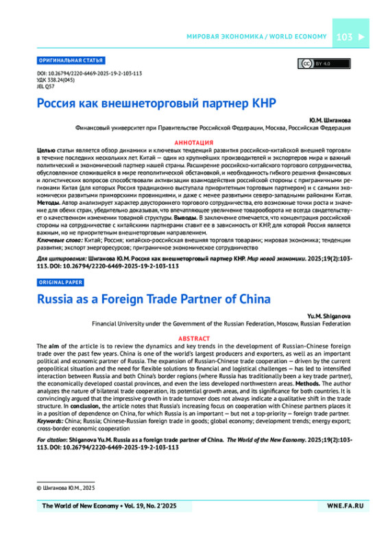 10. Seniuk N.U. Russian-Chinese trade: Current trends and prospects. Baltic RIM Economies. 2022;(4):48-49. URL: https://sites.utu.fi/bre/russian-chinese-trade-current-trends-and-prospects