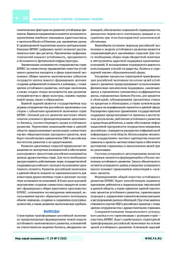 Теоретическая и практическая значимость заключается в том, что в работе сформулированы ключевые факторы успешного экономического развития в новых условиях и предложены рекомендации, способствующие трансформации российской экономики в соответствии с принципами устойчивого развития.