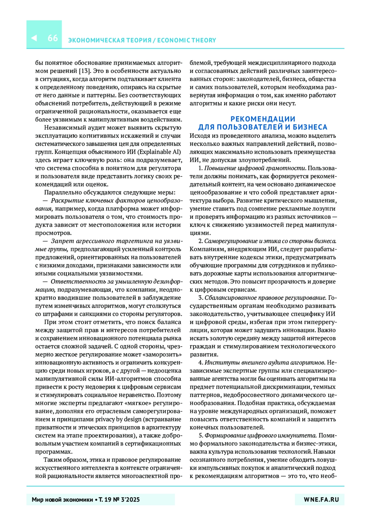 Практическая значимость статьи обусловлена тем, что содержащиеся в ней выводы способны помочь компаниям, регулирующим органам и потребителям в условиях цифровой экономики взаимодействовать более эффективно и прозрачно, учитывая как выгоды, так и потенциальные риски алгоритмических технологий.