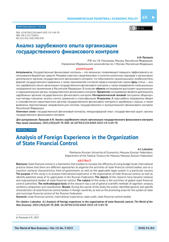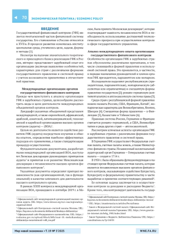 Цель статьи — анализ зарубежного опыта организации государственного финансового контроля, а также определение потенциальных направлений его применения в Российской Федерации.