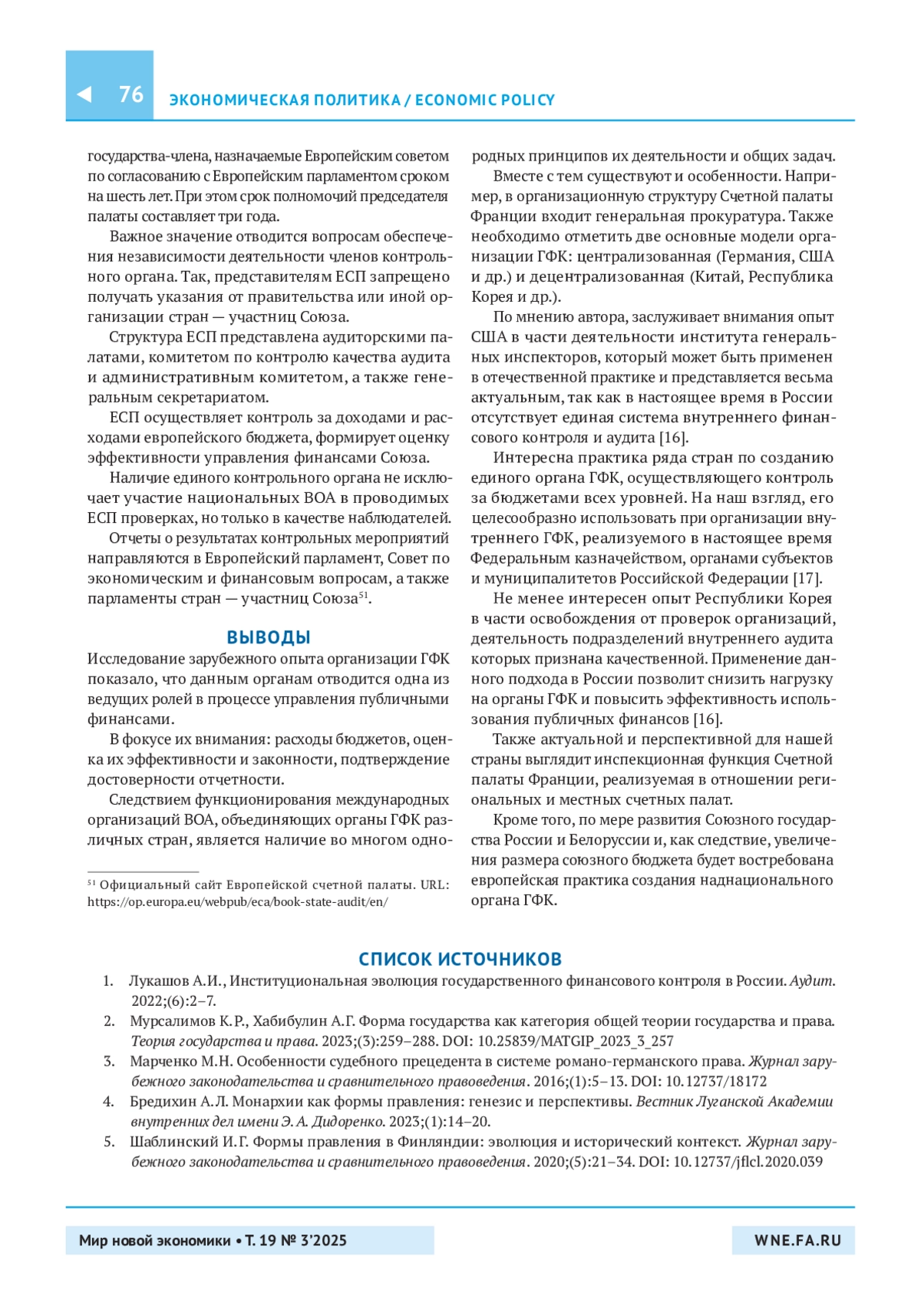 12. Зерова О.Н., Малова Н.Ю. Международный опыт организации государственного финансового контроля. Экономика строительства и городского хозяйства. 2022;18(2):87-97.