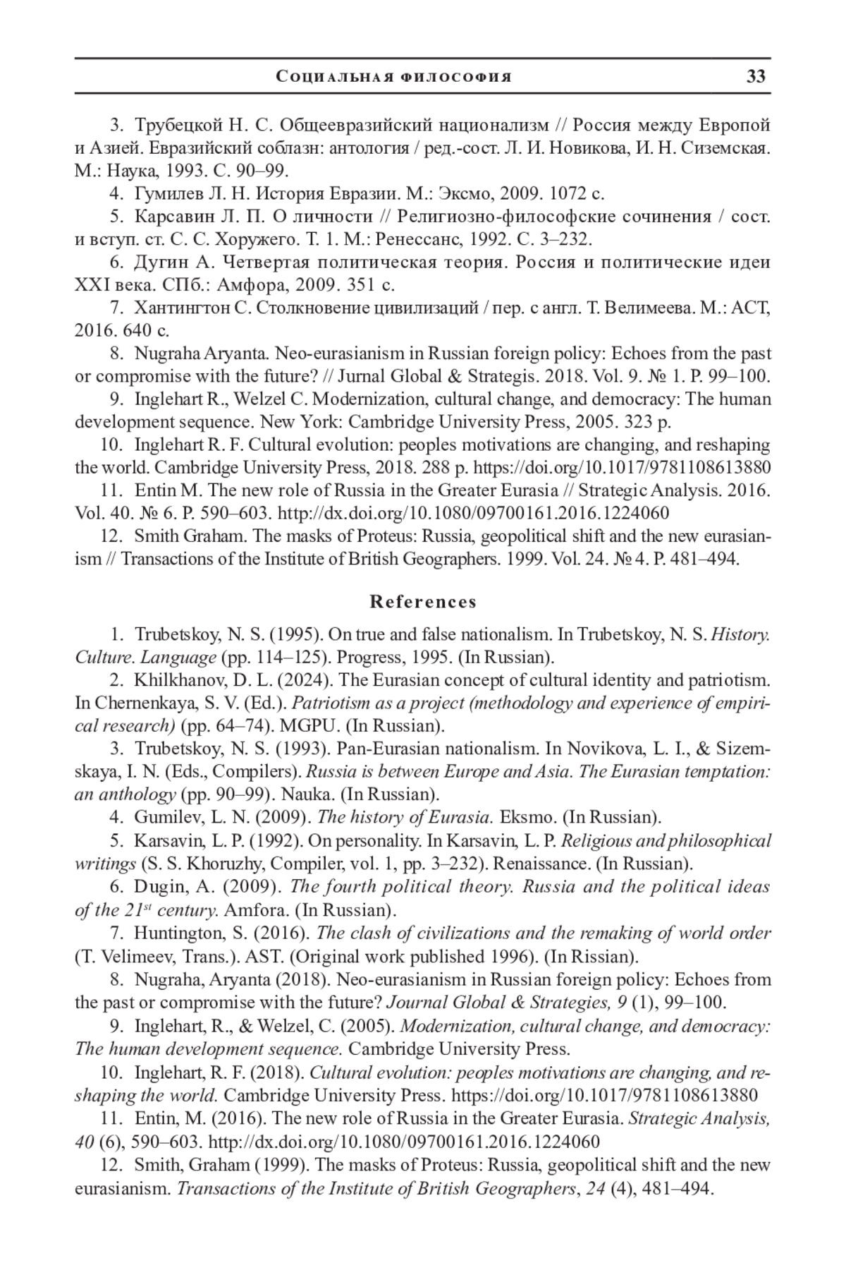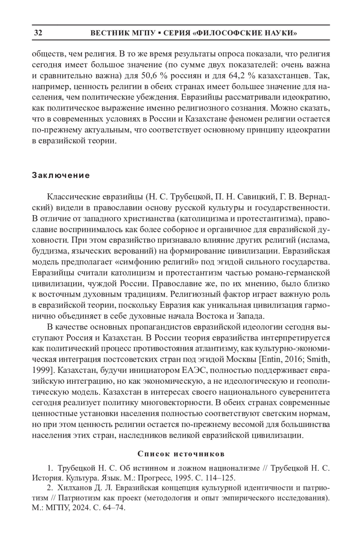 ХИЛХАНОВ Д. Л. РЕЛИГИОЗНЫЙ ФАКТОР В ЕВРАЗИЙСКОЙ ТЕОРИИ // ВЕСТНИК МГПУ. СЕРИЯ: ФИЛОСОФСКИЕ НАУКИ. 2025. № 3 (55)