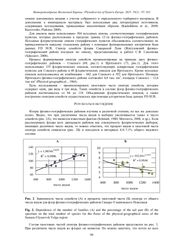 Анализ спектра семейств занимает важное место в исследовании систематической структуры флоры. При этом первостепенное внимание отводится головной части спектра, что вполне обосновано: в ней заключена большая часть видового состава, при этом перечень и последовательность семейств отражает географическое положение флоры (Schmidt, 1980; Malyshev, 1972 et al.). Однако исключать часть спектра, включающую семейств с небольшим числом видов (хвостовая часть), не вполне правомерно, так как в ней также заключена определенная часть информации, характеризующая состояние флоры.