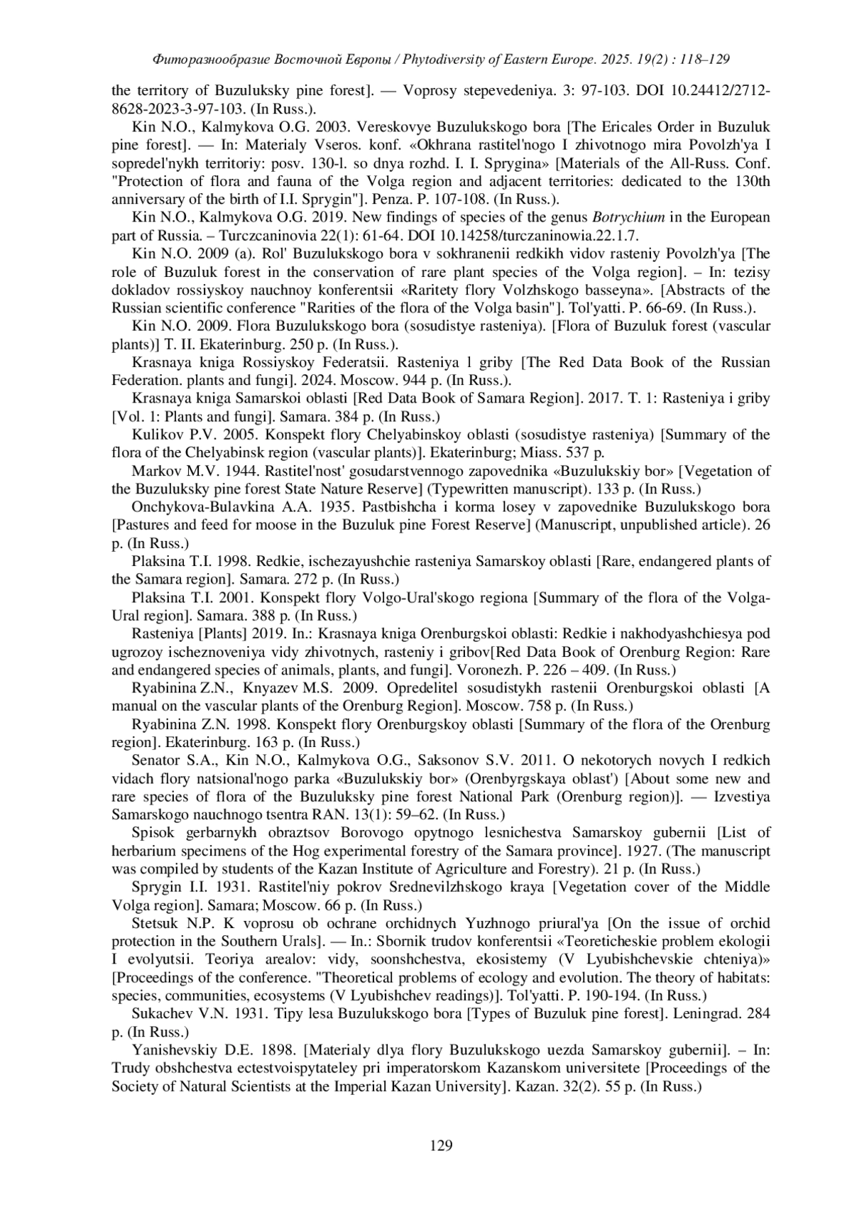 4. [Kin, Kalmykova] Кин Н.О., Калмыкова О.Г. 2003. Вересковые Бузулукского бора. - В кн.: Материалы Всерос. конф. “Охрана растительного и животного мира Поволжья и сопредельных территорий: посв. 130-л. со дня рожд. И.И. Спрыгина”. Пенза. С. 107-108. EDN: TDMEKL