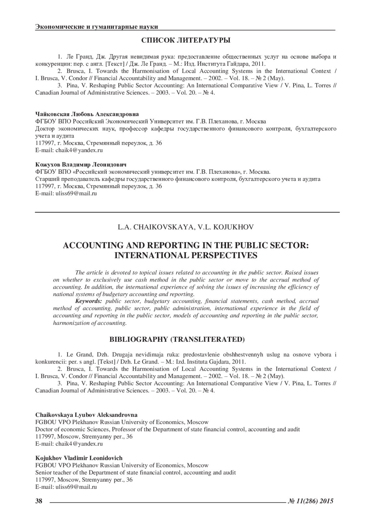 3. Pina, V. Reshaping Public Sector Accounting: An International Comparative View / V. Pina, L. Torres // Canadian Journal of Administrative Sciences. - 2003. - Vol. 20. - № 4.