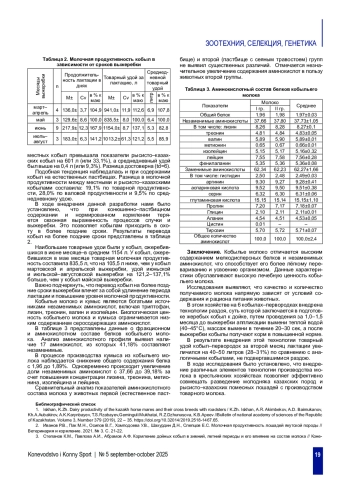 3. Степанов К.М., Павлова А.И., Абрамов А.Ф. Кормление дойных кобыл в зимний, летний периоды и его влияние на состав молока // Коневодство и конный спорт. 2009. № 5. С. 25-27.