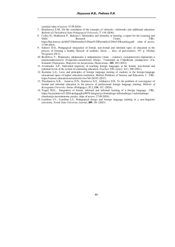 ЛЕУШИНА И. В., РЯБОВА Л. И. ИНОЯЗЫЧНАЯ ПОДГОТОВКА СТУДЕНТА НЕЯЗЫКОВОГО ВУЗА: ФОРМАЛЬНЫЙ, НЕФОРМАЛЬНЫЙ И ИНФОРМАЛЬНЫЙ КОМПОНЕНТЫ // УЧЕНЫЕ ЗАПИСКИ КРЫМСКОГО ФЕДЕРАЛЬНОГО УНИВЕРСИТЕТА ИМЕНИ В. И. ВЕРНАДСКОГО. СОЦИОЛОГИЯ. ПЕДАГОГИКА. ПСИХОЛОГИЯ. 2025. ТОМ 11 (77). № 3