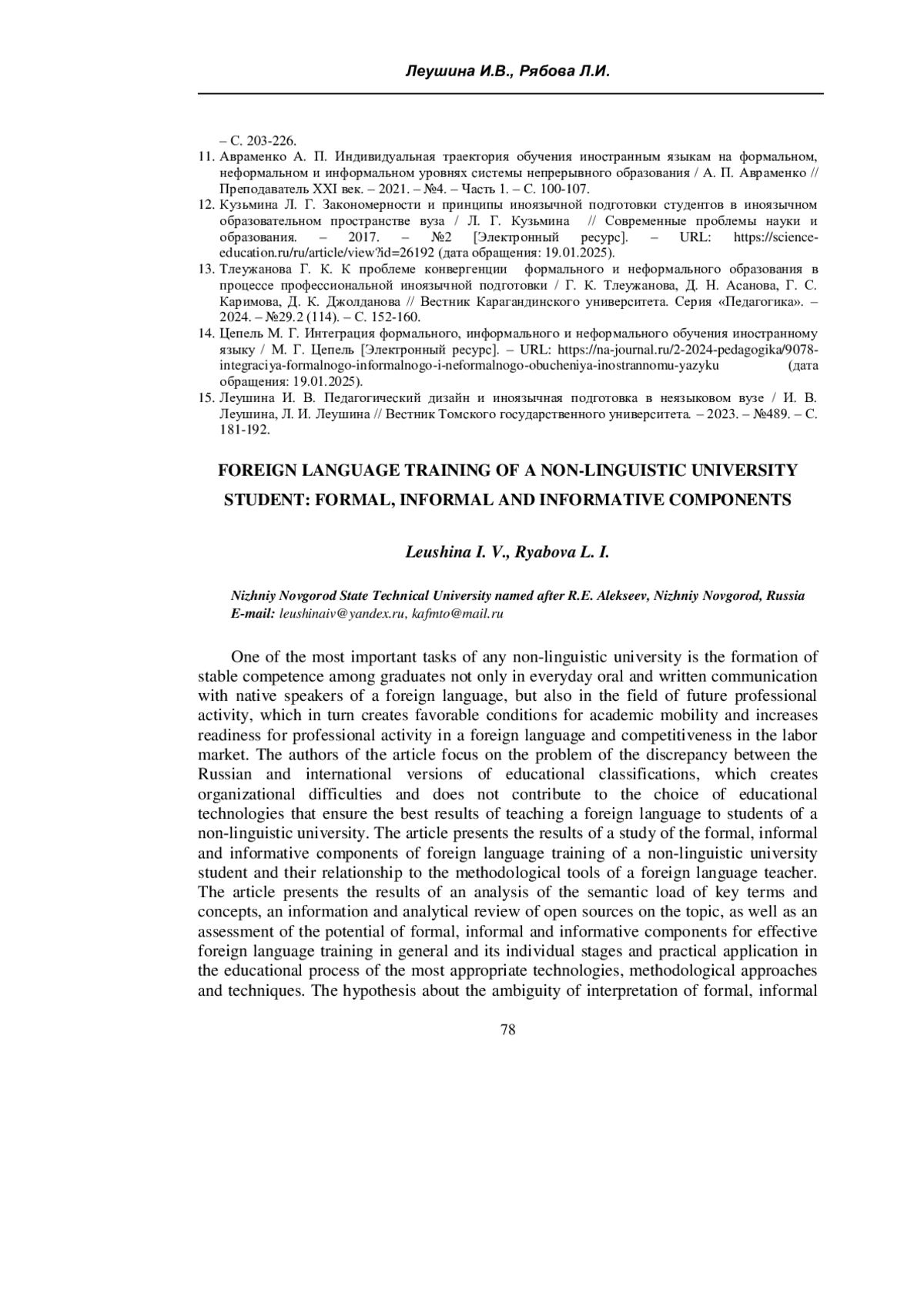 Статья: ИНОЯЗЫЧНАЯ ПОДГОТОВКА СТУДЕНТА НЕЯЗЫКОВОГО ВУЗА: ФОРМАЛЬНЫЙ, НЕФОРМАЛЬНЫЙ И ИНФОРМАЛЬНЫЙ КОМПОНЕНТЫ (2025)