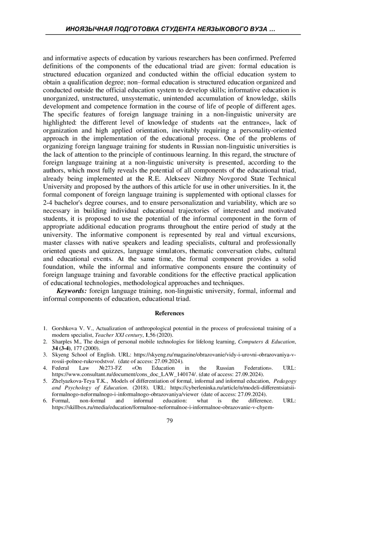Ключевые фразы: иноязычная подготовка, НЕЯЗЫКОВОЙ ВУЗ, формальный, неформальный и информальный компоненты образования, образовательная триад