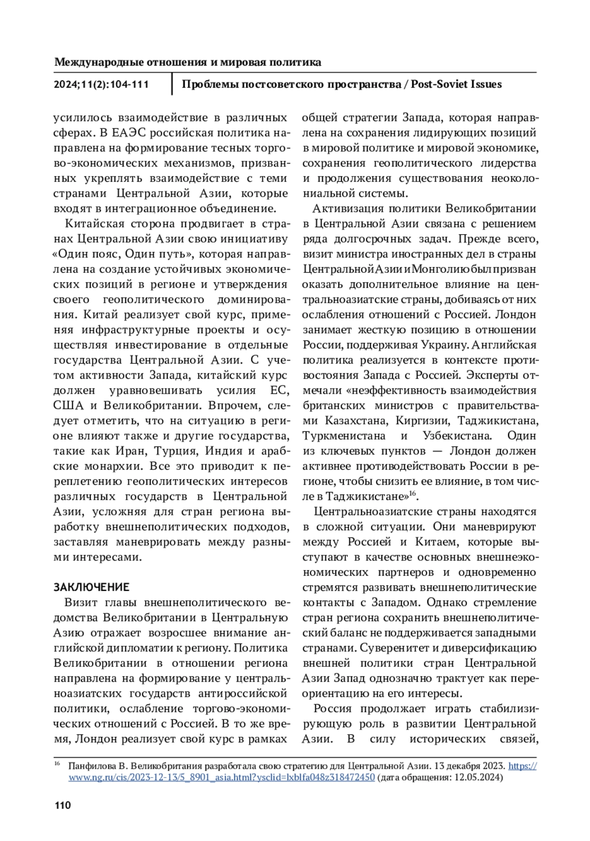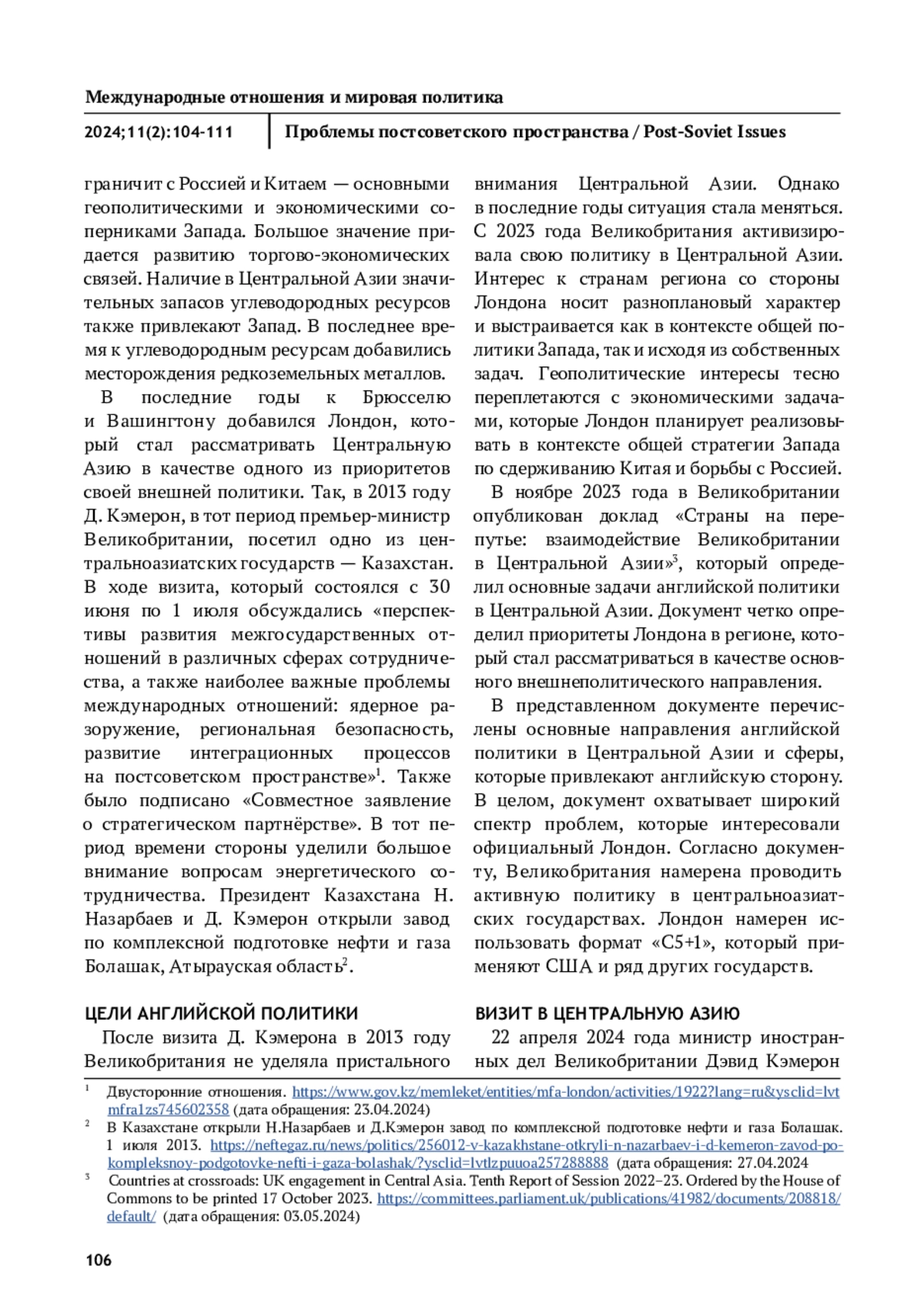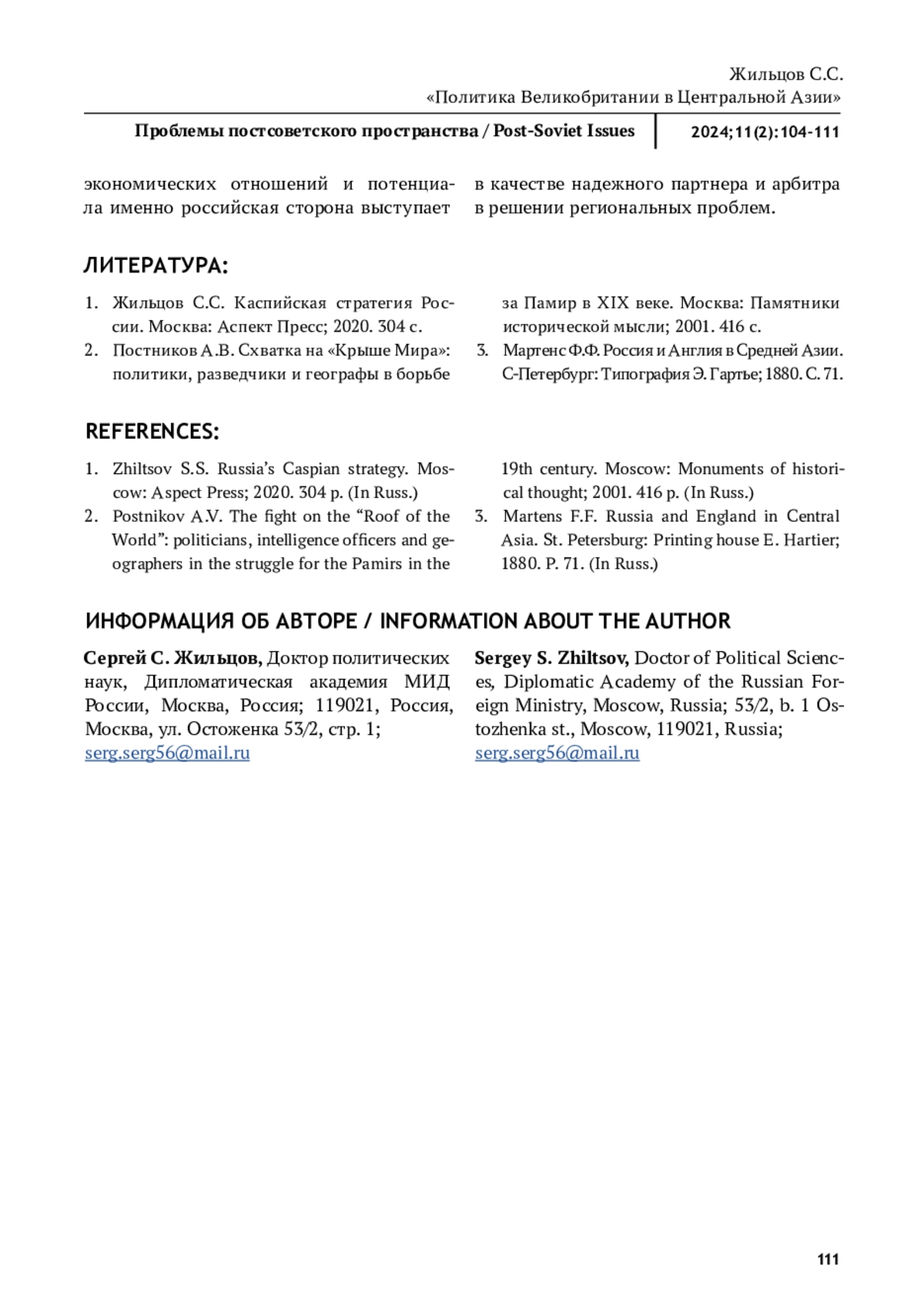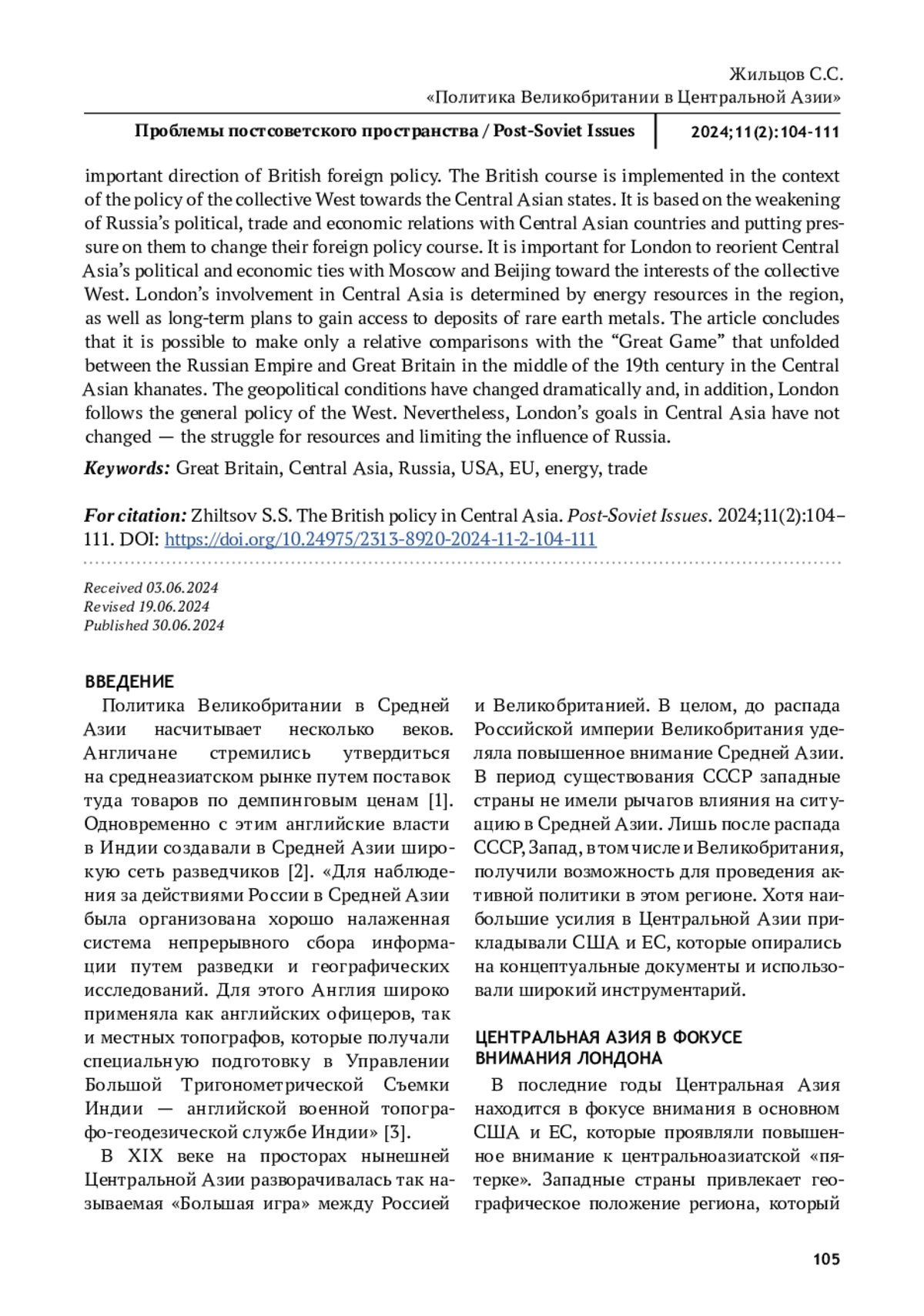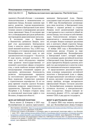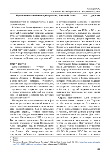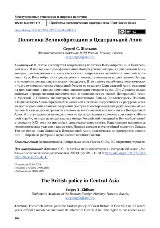 ЖИЛЬЦОВ С. С. ПОЛИТИКА ВЕЛИКОБРИТАНИИ В ЦЕНТРАЛЬНОЙ АЗИИ // ПРОБЛЕМЫ ПОСТСОВЕТСКОГО ПРОСТРАНСТВА. 2025. ТОМ 11, № 2