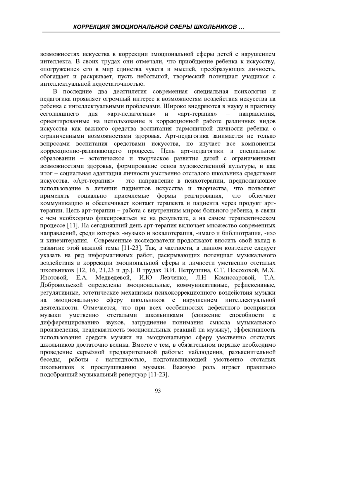Статья: КОРРЕКЦИЯ ЭМОЦИОНАЛЬНОЙ СФЕРЫ ШКОЛЬНИКОВ С НРУШЕНИЕМ ИНТЕЛЛЕКТУАЛЬНОЙ ДЕЯТЕЛЬНОСТИ СРЕДСТВАМИ ИСКУССТВА (2025)