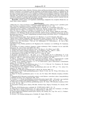 1. Маковский А.Л. Code civil Франции и кодификация гражданского права в России (связи в прошлом, проблемы влияния и совершенствования) // Вестник ВАС РФ. 2005. № 2. С. 137 - 148.