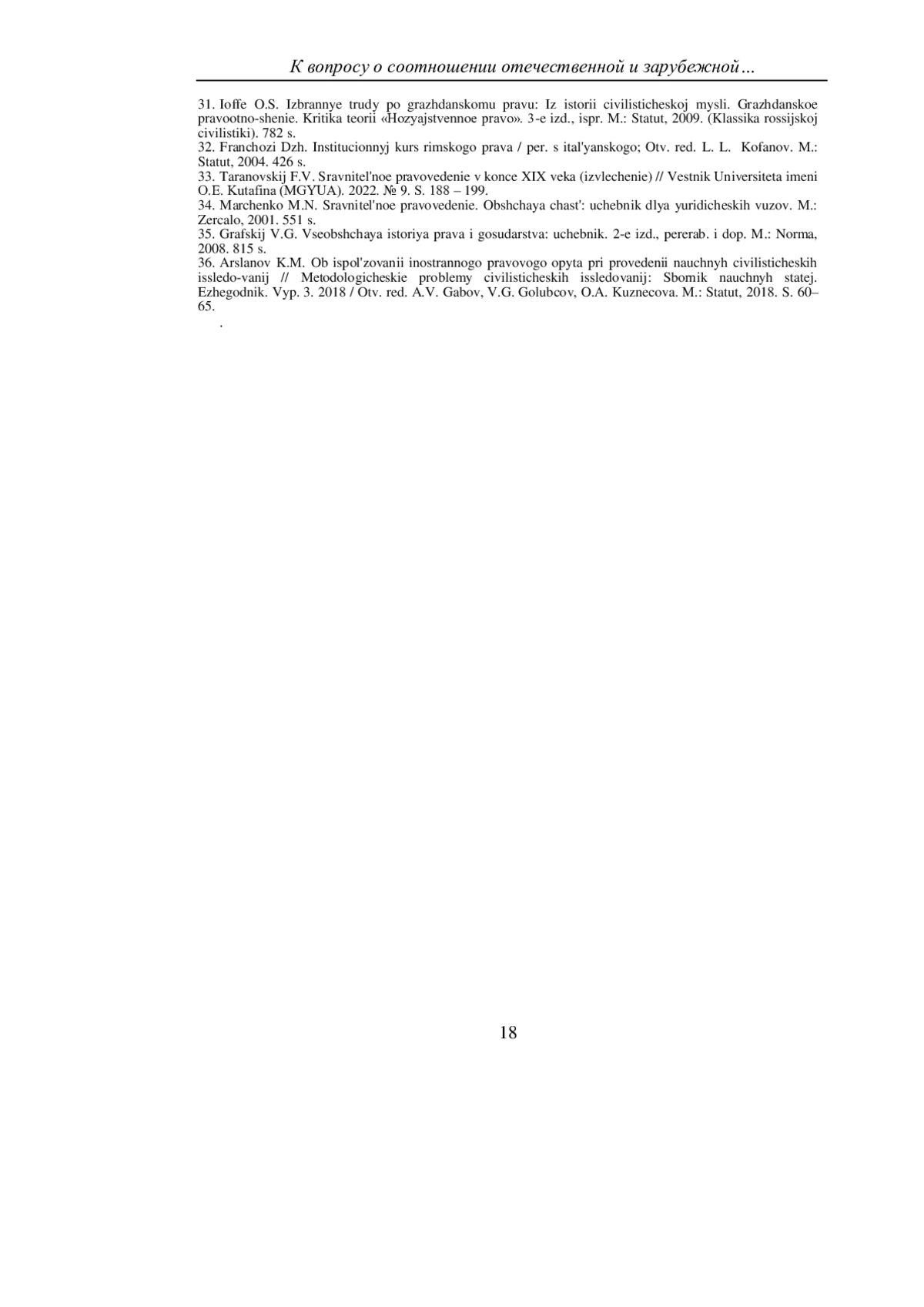 36. Арсланов К.М. Об использовании иностранного правового опыта при проведении научных цивилистических исследований // Методологические проблемы цивилистических исследований: Сборник научных статей. Ежегодник. Вып. 3. 2018 / Отв. ред. А.В. Габов, В.Г. Голубцов, О.А. Кузнецова. М.: Статут, 2018. С. 60-65. EDN: YUEIYP