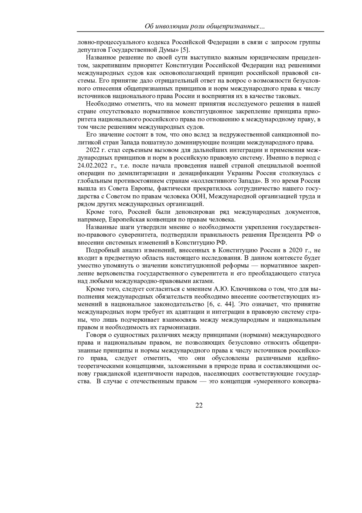 6. Ключников А.Ю. Разрешение судами конфликта международного и национального права // Российский судья. - 2024. - № 12. - С. 44-48. EDN: AIUBFW