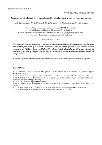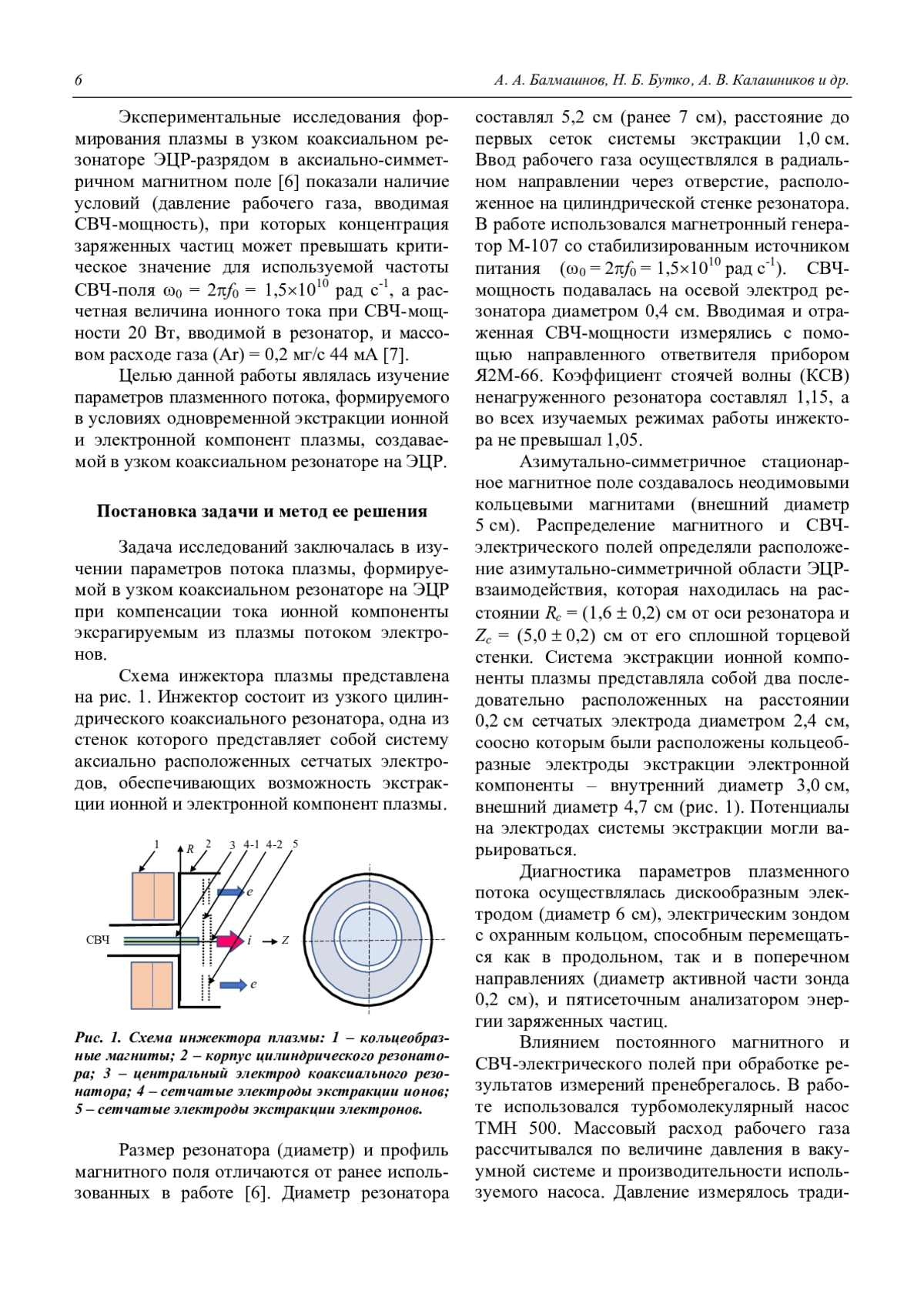 Балмашнов А. А., Бутко Н. Б., Калашников А. В., Степина С. П., Умнов А. М. Генерация плазменного потока на основе ЭЦР-разряда в узком коаксиальном резонаторе 5