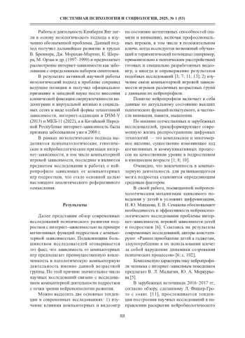 Ключевые фразы: интернет-зависимость, компьютерная игровая зависимость, аддикции, нейропсихология развития, нейропрофиль