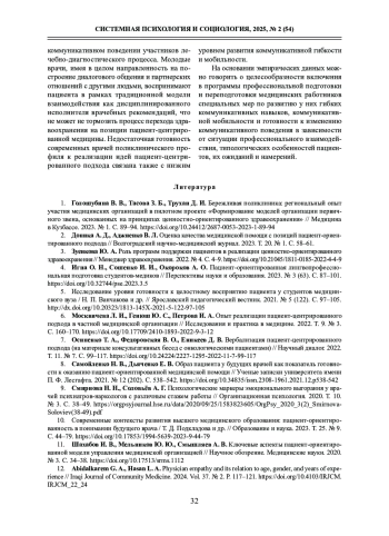 14. Heuss S. C., Zimmerli L., Schneeberger A. R. How do physicians from two generations com municate with each other? // Cogent Social Sciences. 2022. Vol. 8. № 1. Article 2095745. 10.1080/23311 886.2022.2095745. DOI: 10.1080/23311886.2022.2095745 EDN: CJRIJP