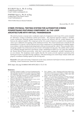18. Component-in-the-loop testing of automotive powertrains featuring all-wheel-drive / I. Kulikov, S. Korkin, A. Kozlov [et al.] // Energies. - 2021. - Vol. 14, iss. 7. - https://. DOI: 10.3390/en14072017