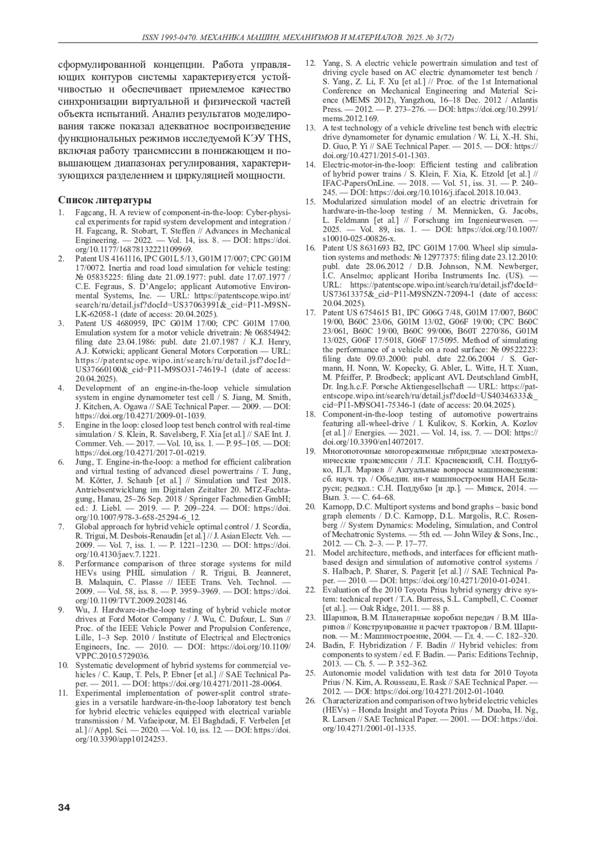 13. A test technology of a vehicle driveline test bench with electric drive dynamometer for dynamic emulation / W. Li, X.-H. Shi, D. Guo, P. Yi // SAE Technical Paper. - 2015. -. DOI: 10.4271/2015-01-1303
