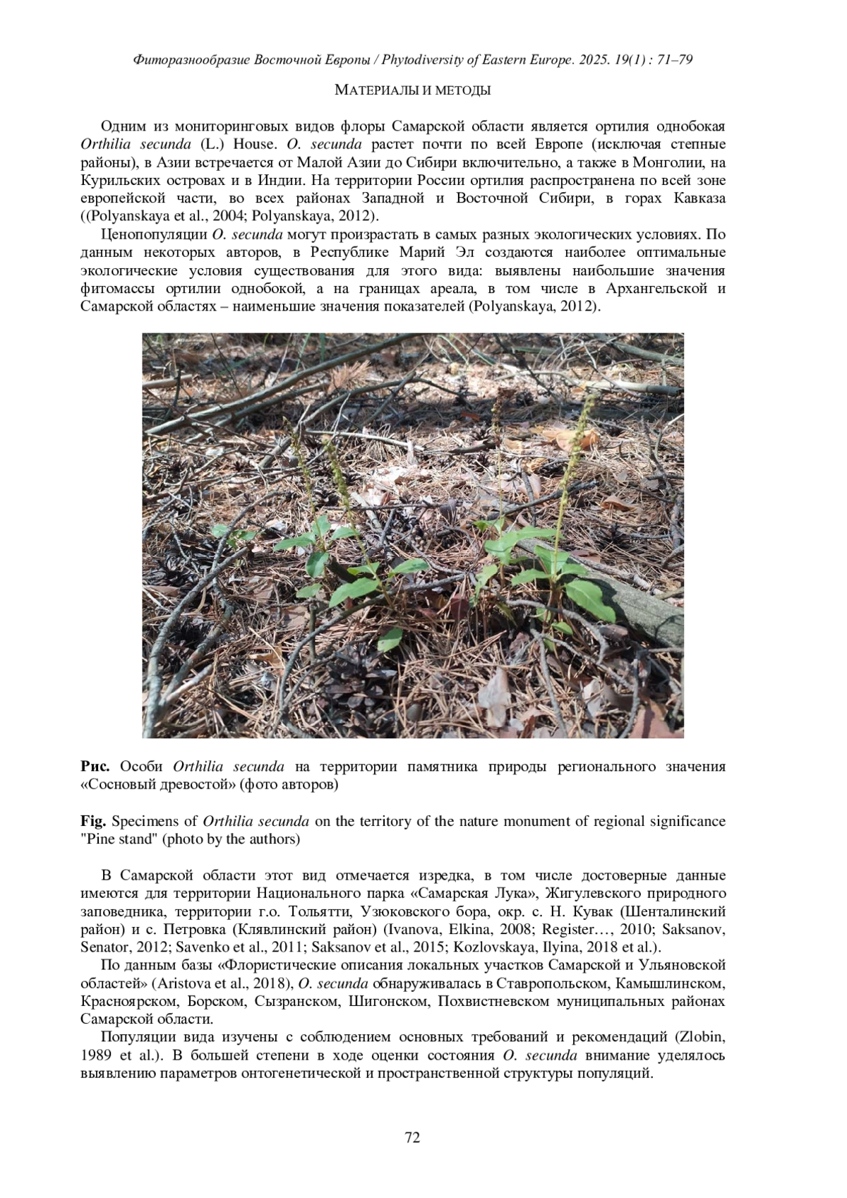 11. [Polyanskaya] Полянская Т.А. 2012. Экологическое разнообразие ценопопуляций ортилии однобокой (Orthilia secunda (L.) House). - Вестник Воронежского университета. Серия Биология. Химия. Фармация. 1: 127-133.