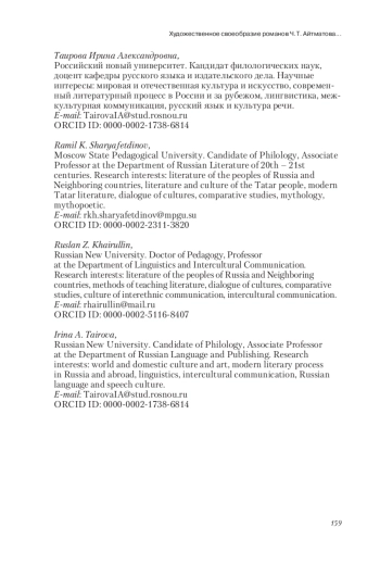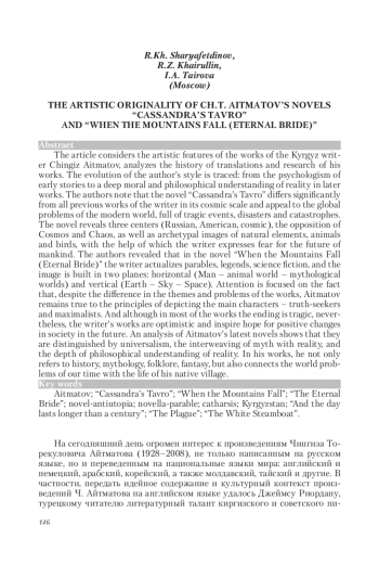 ТАИРОВА И., ШАРЯФЕТДИНОВ Р. Х., ХАЙРУЛЛИН Р. З. ХУДОЖЕСТВЕННОЕ СВОЕОБРАЗИЕ РОМАНОВ Ч. Т. АЙТМАТОВА "ТАВРО КАССАНДРЫ" И "КОГДА ПАДАЮТ ГОРЫ (ВЕЧНАЯ НЕВЕСТА)" // НОВЫЙ ФИЛОЛОГИЧЕСКИЙ ВЕСТНИК