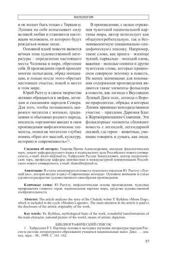 Статья: ХУДОЖЕСТВЕННОЕ СВОЕОБРАЗИЕ ПОВЕСТИ Ю. РЫТХЭУ "ЛУННЫЙ ПЕС" (2021)