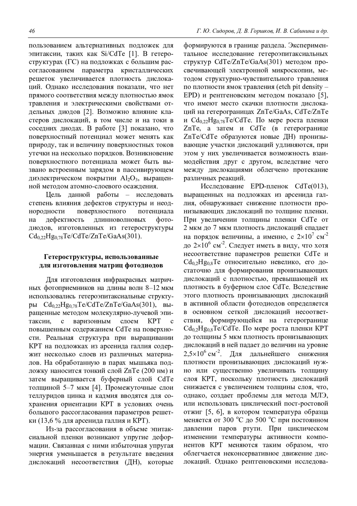 Сидоров Г. Ю., Горшков Д. В., Сабинина И. В., Сидоров Ю. Г., Варавин В. С., Предеин А. В., Якушев М. В., Икусов Д. Г. Неоднородность темновых токов инфракрасных фотодиодов на основе Cd0,22Hg0,78Te 45