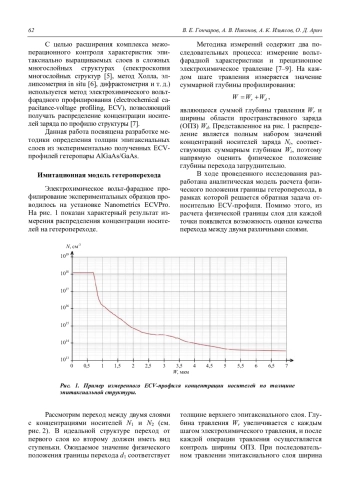 Гончаров В. Е., Никонов А. В., Ильясов А. К., Арич О. Д. Определение толщины эпитаксиальных слоев гетеропары AlGaAs/GaAs методом электрохимического вольт-фарадного профилирования 61