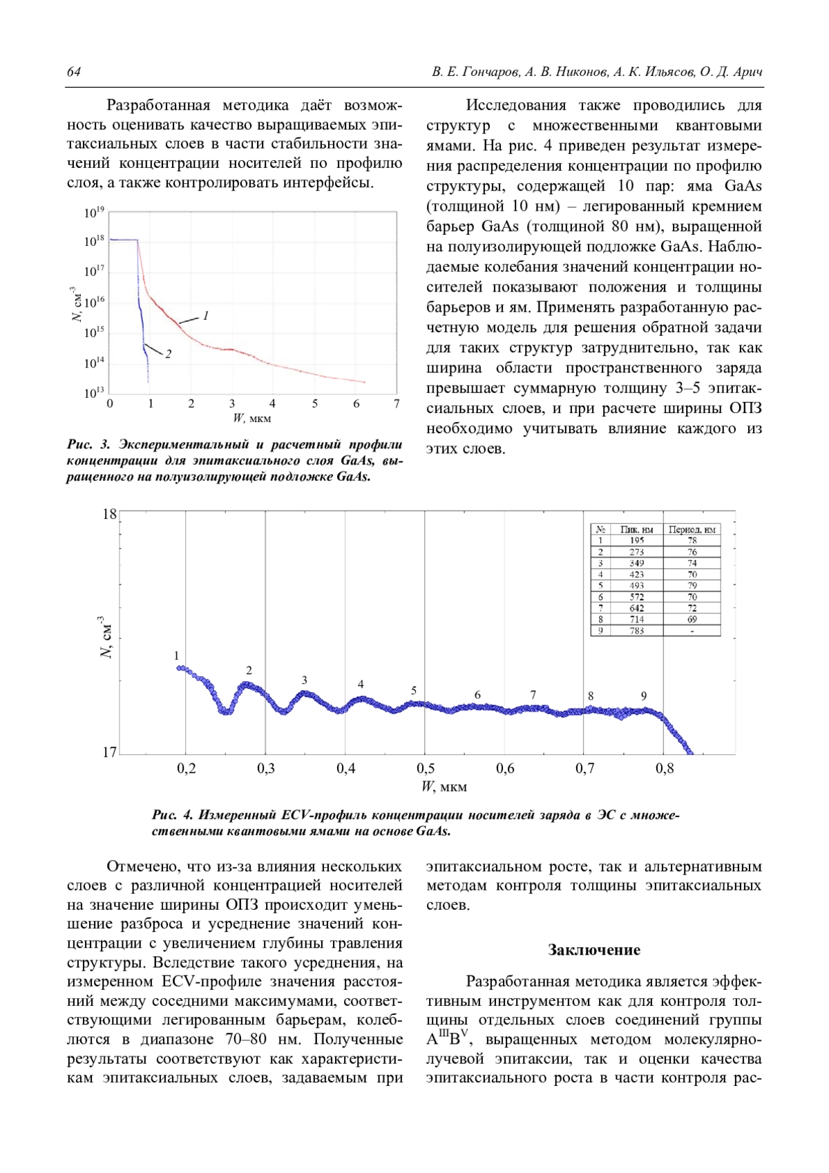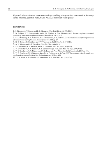 V. E. Goncharov, A. V. Nikonov, A. K. Ilyasov, and O. D. Arich Estimation of AlGaAs/GaAs epitaxial structures thickness by means of electrochemical capaci-tance-voltage profiling 61