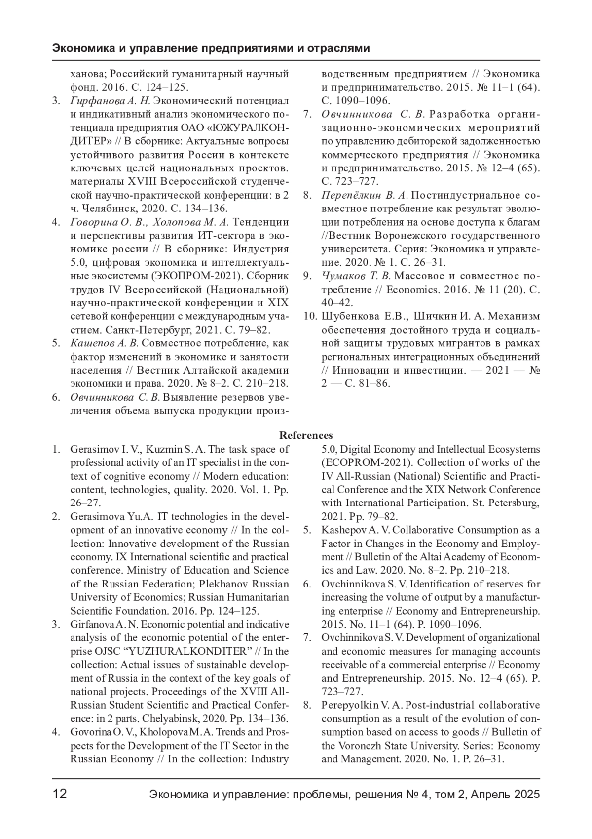 5. Кашепов А. В. Совместное потребление, как фактор изменений в экономике и занятости населения // Вестник Алтайской академии экономики и права. 2020. № 8-2. С. 210-218. EDN: CCHJFM
