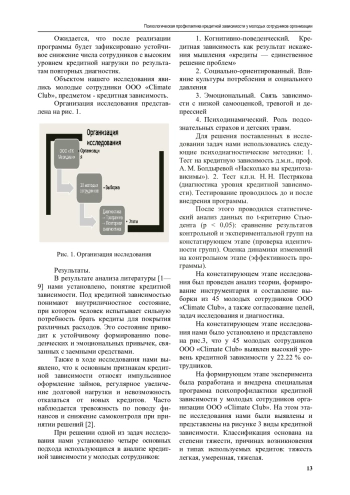 Результаты. Разработка, внедрение и экспериментальная проверка в системе управле-ния персоналом компании программы психопрофилактической работы по борьбе с кредит-ной зависимостью молодых сотрудников. Психопрофилактическая программа нацелена на существенное снижение кредитной зависимости молодых сотрудников и повышение финансовой устойчивости коллектива.