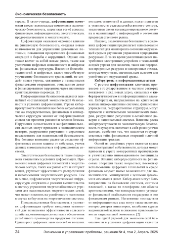 Цифровизация экономики оказывает значительное влияние на все сферы государственной и частной деятельности. Однако с переходом к цифровым технологиям возникают и новые угрозы, которые могут негативно сказаться на стабильности экономики, государственных институтов и национальной безопасности.