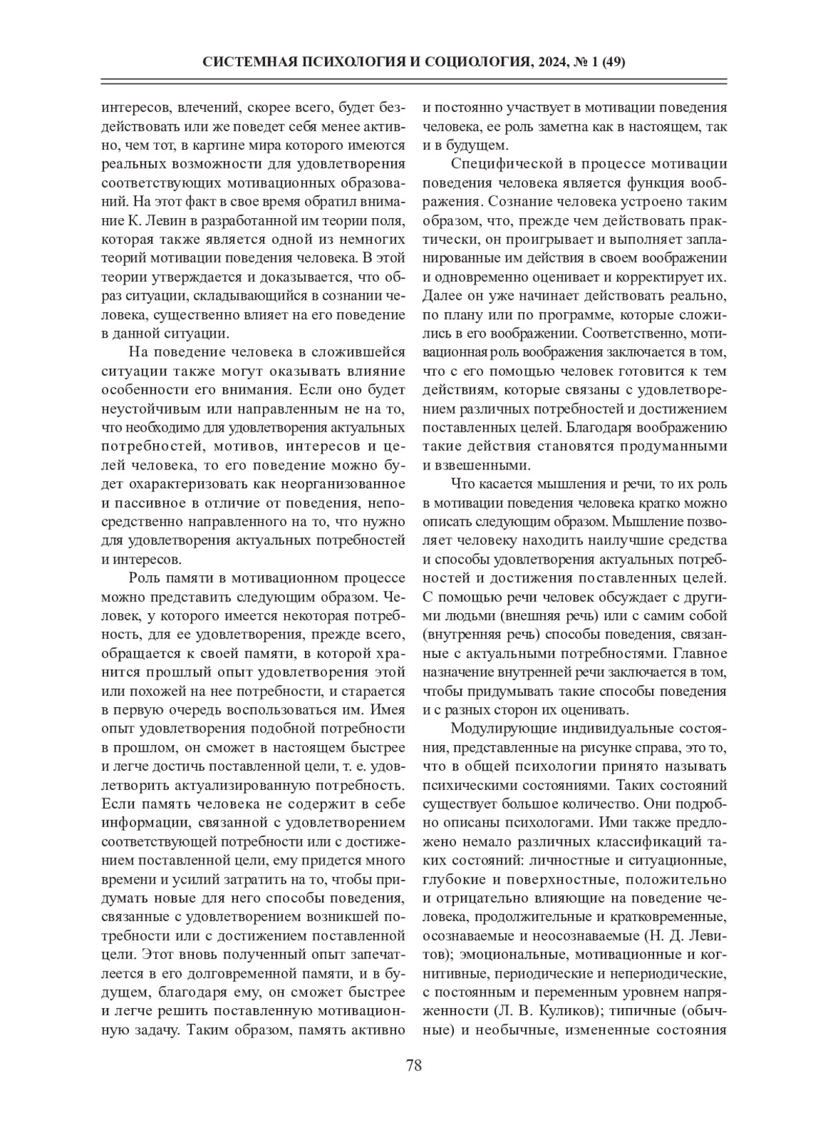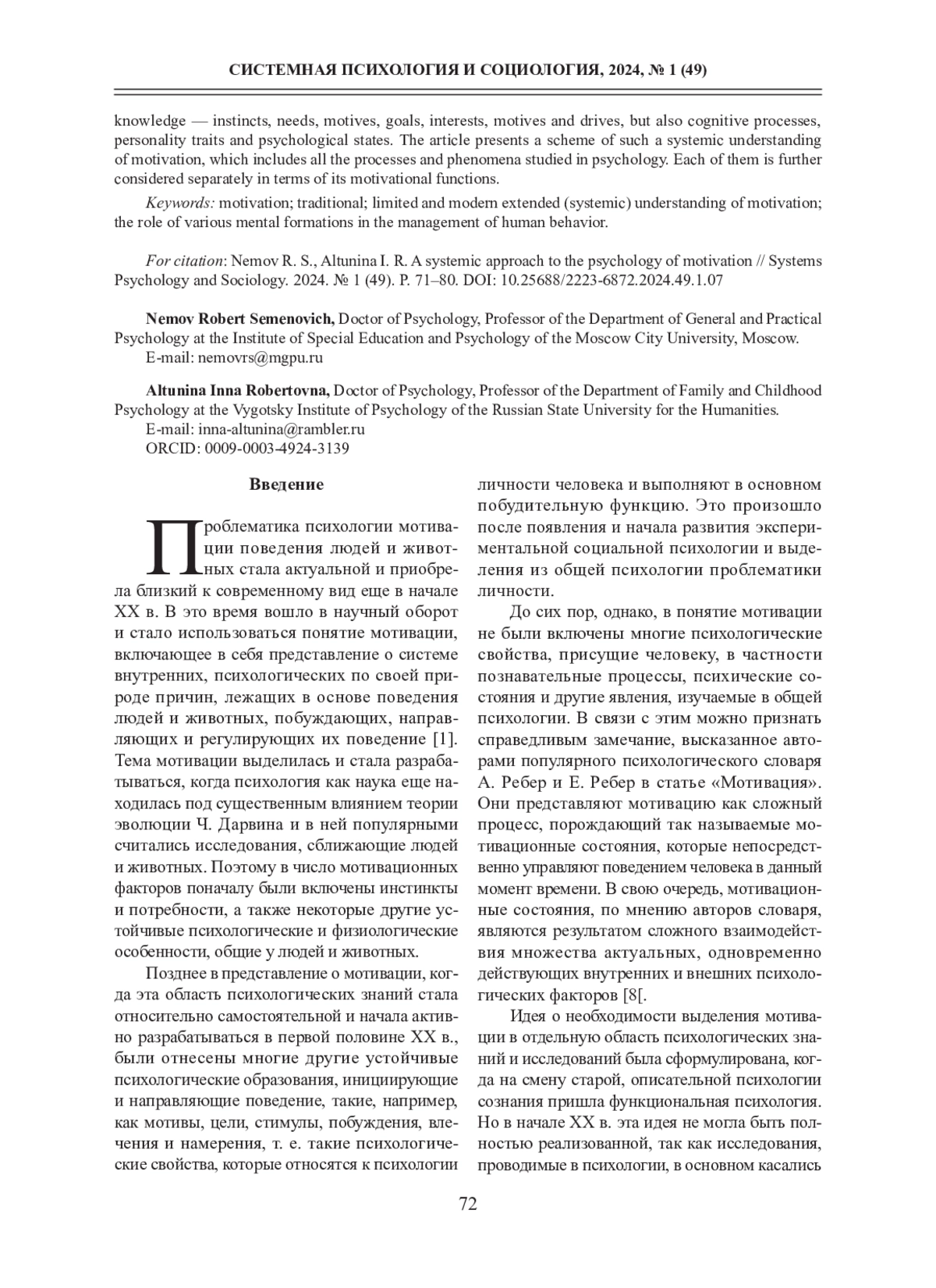 НЕМОВ Р. С., АЛТУНИНА И. Р. КОМЛЕКСНЫЙ ПОДХОД К ПСИХОЛОГИИ МОТИВАЦИИ // СИСТЕМНАЯ ПСИХОЛОГИЯ И СОЦИОЛОГИЯ. 2024. № 1 (49)