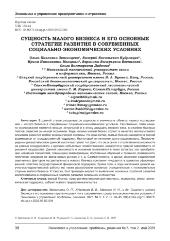 В данной статье раскрывается сущность и значимость объекта нашего исследования - малого бизнеса в современных социально-экономических условиях. Несомненно, тема нашего исследования является весьма актуальной и в эпоху двадцать первого века, в реалиях быстрых темпов развития рыночной экономики. Ведь именно малый бизнес служит в качестве неотъемлемого элемента развития любой экономической системы. На наш взгляд, малый бизнес находится в тесной взаимосвязи от государственной поддержки, без которой он не может долго существовать. Первоочередным доказательством данной мысли выступает тот факт, что он, в связи с отсутствием возможности на равных конкурировать с другими субъектами хозяйствования, находится в прямой зависимости от решений государства. Данная зависимость в основном проявляется в таких аспектах, как приобретение новейших технологий, повышение квалификации, постоянные обучения и тренинги, возможность получения ресурсов на финансовых рынках и т. д. Соответственно, с целью снижения воздействия озвученных факторов на деятельность малого бизнеса компании нуждаются в грамотно сформированной политике государственной финансовой поддержки. Кроме того, в ходе написания данной научно-исследовательской работы мы также рассмотрели основные отрицательные и положительные стороны малого бизнеса. К тому же, был проведён анализ по выявлению основных стратегий развития малого бизнеса в современных реалиях развития экономики и общества.