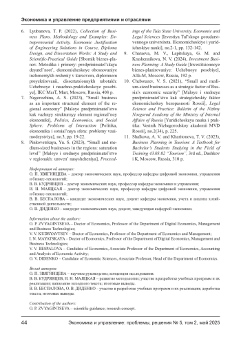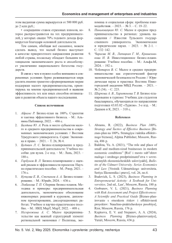 2. Балдина Ю. А. Роль и место субъектов малого и среднего предпринимательства в современных экономических условиях // Вестник Удмуртского университета. Серия: Экономика и право. - 2021. - Т. 26, № 4.
