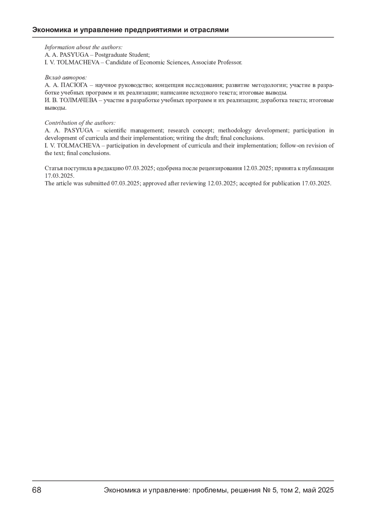 Автор (ы): Пасюга Артем Анатольевич, Толмачева Ирина Вильевна